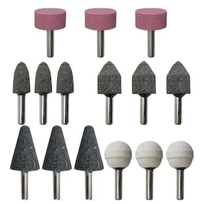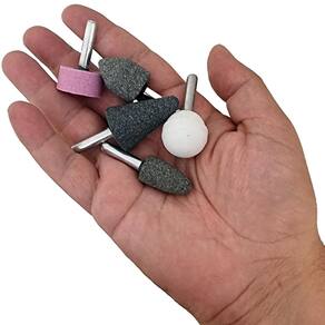Kit 15 Pontas Montadas Rebolo Abrasivo Haste 6mm Multiuso Bravo Tools - Marca: Bravo Tools - Referência: BV1006 - Indicada para limpezas e acabamentos em superfícies - Diâmetro da haste: 6mm - 3 Ponta Cilíndrica Branca 22 x 22mm Grão Fino - 3 Ponta Tipo Roda Rosa 24 x 12,5mm Grão Médio - 3 Ponta Tipo Bala Cinza 16 x 26mm Grão Grosso - 3 Ponta Tipo Árvore Cinza 24 x 35mm Grão Grosso - 3 Ponta Tipo Cônica Cinza 19 x 27mm Grão Grosso - Material da ponta: Óxido de alumínio Corundum - As pontas montadas são indicadas para uso geral - Uso em retificadeiras e furadeiras de qualquer marca com mandril de 6mm - Indicada para afiação, esmerilhamento e desbaste em metais, joias, pedras preciosas, vidro, entre outros materiais - Ideal para trabalhos detalhados em uma variedade de superfícies, oferecendo remoção de material suave e precisa - Seu formato facilita o trabalho em locais de difícil acesso - Velocidade máxima: 25.000rpm - Peso bruto: 90 gramas - : 90 dias contra defeitos de fabricação Marca: Não Informado Ean: 7734625974837