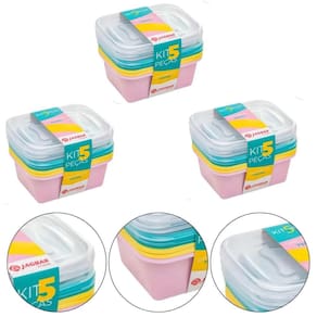Kit 15 Potes Plástico Tampa Organiza Alimentos 750ml Jaguar 3 unidades Kit 5 Potes Plástico com Tampa Organiza Alimentos 750ml - Jaguar