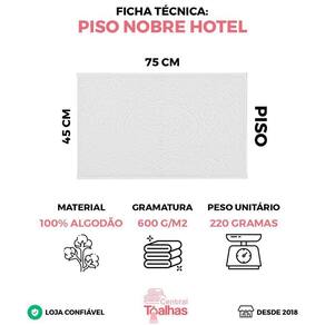 Kit 15 Toalhas De Piso Para Hotel Luxo Grossa - Nobre - Branco O Kit com Toalhas de Piso para Hotel Luxo Nobre foi desenvolvido especialmente para profissional em hotéis, pousadas, clínicas, academias, salões de beleza, estéticas, hospitais e também para que você possa sentir o conforto de um hotel 5 estrelas em sua casa. Esse Kit de Toalhas de Piso para Hotel leva até você o máximo aconchego com suas medidas de 45cm x 75cm que absorvem a água e protegem os pés no pós-banho, com toque extremamente macio.