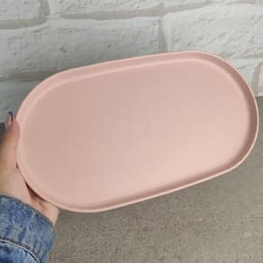 Kit 15 Travessa Oval Bambu Plástico 30x17cm Prato Servir Petisco Bandeja Lines Lyor