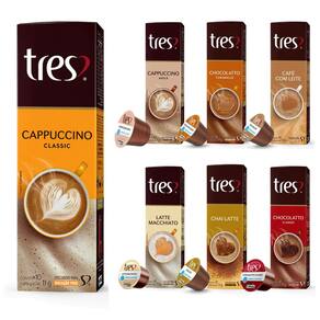 KIT 150 CÁPSULAS 3 CORAÇÕES BEBIDAS CREMOSAS e ESPRESSOS - 15 SABORES Experimente o kit completo, com um total de 15 sabores dos mais tradicionais dos Espressos e das Bebidas Cremosas da Três Corações!!! NESSA COMPRA VOCÊ ESTÁ ADQUIRINDO: - 15 CAIXAS 150 Cápsulas no total de BEBIDAS CREMOSAS e ESPRESSOS da Três Corações: 15 Sabores diferentes 1 caixa de Cappuccino Classic; 1 caixa de Cappuccino Avelã; 1 caixa de Chocolatto Classic; 1 caixa de Chocolatto Caramelo; 1 caixa de Café com Leite; 1 caixa de Chai Latte; 1 caixa de Latte Machiatto; 1 caixa de Atento - forte - intensidade 5 de 5 1 caixa de Vibrante - forte - intensidade 4 de 5 1 caixa de Supremo - médio intensidade 3 de 5 1 caixa de Pleno - médio intensidade 3 de 5 1 caixa de Ameno - suave intensidade 2 de 5 1 caixa de Decaf - descafeinado intensidade 1 de 5 1 caixa de Filtrado Clássico intensidade 4 de 5 1 caixa de Filtrado Gourmet - médio intensidade 3 de 5 Produto Três Corações Serve em todas as máquinas de espresso da Três. Modelo: Modo / Gesto / Serv / Pop / Pop Plus/ Mimo/ Barista/ Lov Uma Delícia!!! Uma bebida bem quentinha, pela manhã ou antes e depois das refeições sempre é uma boa opção! Tudo isso com a praticidade de apenas 1 toque de botão, em sua incrível máquina espresso da TRES®. Do Grupo 3 Corações, as cápsulas de cappuccino Tres trazem a qualidade da marca em uma versão especial como os autênticos espressos italianos. Cada ingrediente da composição é selecionado cuidadosamente, preservando o gosto apurado. O resultado é uma bebida encorpada, cremosa e espumante com um sabor extremamente agradável e de uso exclusivo nas máquinas da marca Tres. Veja essa maravilhosa seleção que separamos para você: BEBIDAS CREMOSAS CAPPUCCINO CLASSIC Com sabor Inesquecível o Cappuccino TRES® é uma deliciosa bebida cremosa composta por café, leite, cacau e canela. CAPPUCCINO AVELÃ O cremoso Cappuccino que você já conhece, agora com um delicioso toque de avelã e cacau. CHOCOLATTO QUENTE Bebida cremosa com delicioso sabor do chocolate com um toque delicado de leite. *Para uso exclusivo na solução TRES® CHOCOLATTO CARAMELLO Chocolate quente cremoso com um toque generoso de caramelo. Combinação especial e muito saborosa. CAFÉ COM LEITE Bebida cremosa que une a força do café com a suavidade do leite. *Para uso exclusivo na solução TRES® CHAI LATTE Inspiração indiana a base de leite e chá preto. Com sabor intenso e muito aromático tem como característica marcante um leve apimentado, devido à combinação de gengibre com especiarias: cardamomo, cravo e canela. Produzido com o sabor das especiarias do oriente. LATTE MACHIATTO Bebida levemente adocicada, muito cremosa e suave, feita com leite e um toque de café. Se você gosta do café com leite TRES vai adorar esse lançamento! Características: Marca: 3 Corações Tipo: Capsulas de Bebidas Cremosas 15 Sabores: Cappuccino Classic, Cappuccino Avelã, Chocolatto Classic, Chocolatto Caramello, Café com Leite, Chai Latte, Latte Machiatto, Atento, Vibrante, Pleno, Supremo, Ameno, Decaf, Filtrado Clássico, Filtrado Gourmet. Unidades por caixa: 10 cápsulas Formato de venda: Kit com 15 caixas, total 150 capsulas, distribuídos em 15 sabores de Bebidas Cremosas e Espressos. Unidades por kit: 150 capsulas Modelo: Pré Definido Tipo: Lácteos Recarregável: Não Quantidade: 150 Tipo de unidade: capsula DIMENSÕES DE CADA CAIXA: - Altura: 6 cm - Largura: 4,8cm - Comprimento: 19,5cm - Peso: 90 g