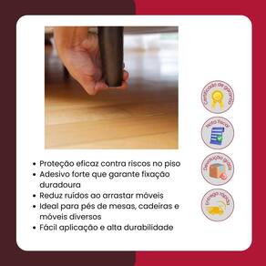 O Feltro Protetor Adesivo Redondo 2,5 cm é a solução ideal para proteger pisos, aumentar a durabilidade dos seus móveis e reduzir ruídos no dia a dia. Desenvolvido para pés de mesas, cadeiras e diversos tipos de móveis, o feltro adesivo oferece proteção antirrisco eficiente, fixação forte e aplicação rápida. Perfeito para quem busca praticidade, economia e preservação do ambiente. Ficha Técnica Quantidade: 16 unidades ou 4 cadeiras Material: Feltro adesivo Formato: Redondo Tamanho: 2,5 cm Indicação: Pés de mesas, cadeiras e móveis diversos Função: Proteger piso, reduzir ruído e evitar desgaste Benefícios Protege pisos contra riscos causados pelo atrito dos móveis Fixação adesiva forte que garante longa durabilidade Reduz ruídos ao mover mesas e cadeiras Aumenta a vida útil dos móveis ao evitar desgaste dos pés Fácil aplicação, sem necessidade de ferramentas Usabilidade Basta limpar a superfície dos pés dos móveis, remover o adesivo e aplicar o feltro protetor quadrado. O tamanho 2,5 cm oferece ótimo encaixe em pés de mesas e cadeiras, garantindo aderência eficaz e proteção imediata. Ideal para pisos de madeira, porcelanato, cerâmica e laminado. O Feltro Protetor Adesivo Redondo é uma solução simples e indispensável para manter seu ambiente protegido, silencioso e organizado. Não encontrou o que precisava Fale com a gente Sua sugestão é muito bem-vinda. Vamos buscar a melhor opção com preço competitivo, para que você possa adicionar tudo ao carrinho e receber tudo em um único pacote A ISAMAR Desde 1978, a Isamar é referência em panificação e confeitaria. Nosso compromisso é criar parcerias sólidas, oferecer produtos de qualidade e impulsionar o sucesso dos nossos clientes. Enviamos para todo o Brasil, levando soluções completas e atendimento próximo, transformando clientes em verdadeiros parceiros e amigos. Marca: Não Informado