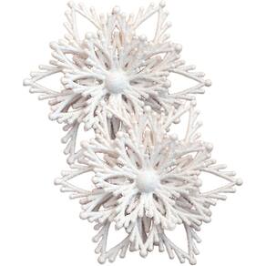 8 Conjunto Com 2 Flores Artificiais Com Glitter Branco De 10cm;