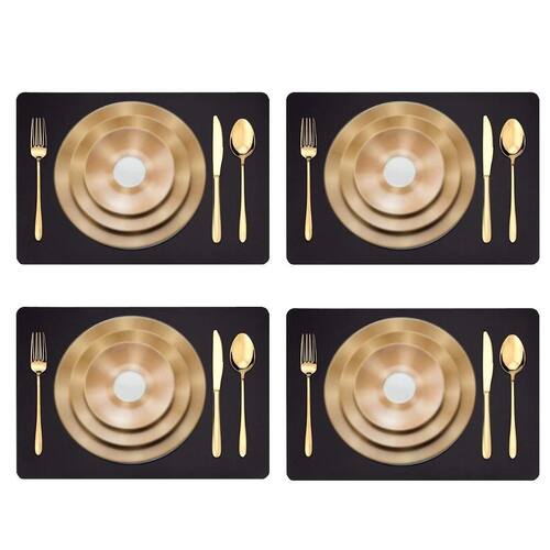 Kit 16 peças jogo americano mesa posta sousplat retangular Cor: preto Tamano: 43x30 Jogo americano couro retangular + porta copos