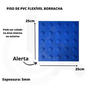 Material PVC Flexível macio e confortável ao pisar. Medidas: 250 x 250 x 5 mm. Aplicação por cola de contato uso interno e externo . Não acompanha cola.