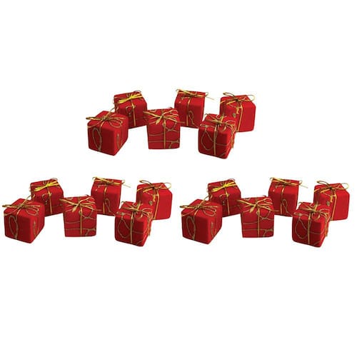 - 18 unidades Mini Presentes Decorados Natal Enfeite Árvore 3x3cm Vermelho e Dourado - Yangzi