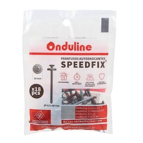 O Kit Parafusos Autobrocantes Speedfix 4,2x68mm com 18 Unidades Vermelho e Marrom da Onduline é impermeável, possui fácil instalação, é resistente a raios UV e deixa o acabamento do telhado mais belo e bonito.