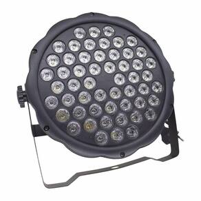 Potência total de 162 watts Leds de 3 watt cada 09 leds vermelhos 09 leds ambars 12 leds verdes 12 leds azuis 12 leds brancos Funcionamento automático Funcionamento rítmico Funcionamento dmx 8 canais Funçao strobo Display digital Carcaça em plástico Cooler de resfriamento Função master / slave Funciona com e sem mesa dmx Alimentação bivolt automática Dimensões lxaxp 21x21x10 Peso aproximado de 1,3 kilo