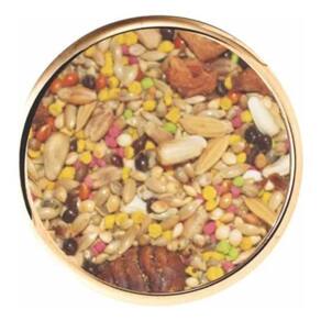 Alpiste Canadense, Arroz com Casca, Cártamo, Milheto Nacional, Painço Nacional, Painço Preto, Painço Verde, Painço Vermelho, Perilla mín. 0,25% , Senha, Trigo Grão, Trigo Mourisco, Sementes de Chia mín. 0,25% , Maçã Desidratada, Crisálida Desidratada, Tenébrio Desidratado, Milho Moído, Gérmen de Milho Integral, Farelo de Soja, Óleo de Soja, Sal Comum, Farinha de Ostras, Ovo Desidratado, Própolis em Pó, aromatizantes e antioxidantes naturais e artificiais.
