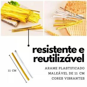O que você vai receber: Kit 200 amarrilho fecho de arame revestido dourado Descrição do Produto: Amarrilho Fecho de Arame Dourado O Amarrilho Fecho de Arame Dourado é um acessório de alta qualidade, desenvolvido para proporcionar um fechamento prático, seguro e elegante. Ideal para diversas aplicações, o amarrilho é composto por arame de alta resistência com acabamento dourado, conferindo não apenas funcionalidade, mas também um toque sofisticado. Seu design versátil permite que seja utilizado em diferentes tipos de pacotes, artesanatos, embalagens e até mesmo como adorno em peças de decoração. Modo de Uso Fechamento de Embalagens: O amarrilho pode ser para fechar embalagens plásticas, sacos, sacolas ou qualquer outro tipo de embalagem que necessite de um fechamento firme. Para usá-lo, basta colocar o amarrilho ao redor da embalagem e torcer as extremidades para garantir que ela esteja bem fechada. Decoração e Artesanato: Utilizado em diversos projetos de artesanato, o amarrilho com fecho de arame dourado serve como um excelente elemento decorativo, agregando beleza e delicadeza. Pode ser para amarrar flores secas, criar arranjos, ou até mesmo em bijuterias e acessórios. Fechamento de Cordões e Fios: Ideal para finalizar e organizar cordões, fitas e fios, o amarrilho também é bastante útil em projetos de costura ou modelagem de peças com materiais flexíveis. Embalagem de Presentes: O amarrilho é uma excelente opção para dar um toque final elegante em embalagens de presentes, especialmente em ocasiões como aniversários, casamentos ou Natal. Pode ser utilizado em conjunto com fitas ou outros materiais decorativos para criar um efeito ainda mais sofisticado. Qualidades do Produto Durabilidade: Fabricado com arame de alta qualidade, o amarrilho é resistente, não enferruja facilmente e mantém sua forma mesmo após uso repetido. Design Elegante: O acabamento dourado confere sofisticação e beleza ao produto, tornando-o ideal para aplicações que exijam tanto funcionalidade quanto estética. Versatilidade: Pode ser utilizado em uma ampla gama de situações, desde a organização de objetos até a decoração e fechamento de embalagens. Facilidade de Uso: Seu design simples e flexível facilita o uso, sendo ideal tanto para profissionais quanto para uso doméstico. Tamanho e Comprimento Variáveis: O amarrilho é oferecido em diferentes comprimentos, permitindo adaptações a diferentes tipos de embalagens ou projetos. Onde Pode Ser Comércio: No fechamento de sacos, embalagens ou pacotes de produtos. Artesanato: Em trabalhos manuais, como scrapbooking, arranjos florais, criação de bijuterias ou outros projetos decorativos. Decoração de Festas e Eventos: Ideal para embalar presentes, decorar mesas de festas, arranjos florais, ou como parte de lembrancinhas. Indústria: Pode ser utilizado em processos industriais para embalar e fechar pacotes de produtos, materiais ou componentes. Palavras-chave Amarrilho de Arame Dourado Fecho de Arame Fechamento de Embalagens Decoração Elegante Arame Dourado Acessórios para Artesanato Organização e Armazenamento Arame Decorativo Fechamento de Presentes Acessórios para Festas Esse produto é uma solução prática e estética para quem busca tanto eficiência quanto um toque de charme e sofisticação no fechamento de pacotes e na decoração de projetos criativos.