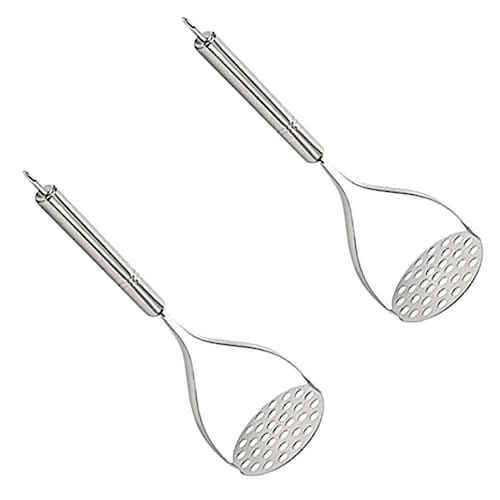 2 Amassador Espremedor De Batatas Purê Inox Cabo Reforçado Kit contendo 2 Amassadores de Batatas de aço inox e cabo reforçado