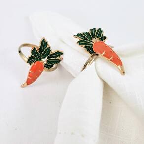 Kit 2 Anel Porta Guardanapo Cenoura Mesa Posta Pascoa Conjunto de Porta-Guardanapo com Enfeite de Cenoura - Elegância para Sua Mesa de Páscoa