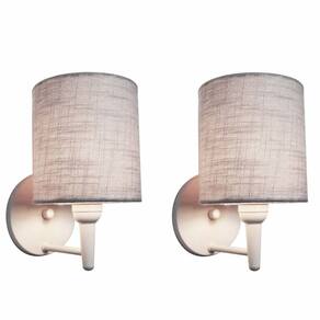 Kit/2 Arandela Cilíndrica Md-2009 Base Branco Cúpula em Tecido 14x15cm Cinza - Bivolt