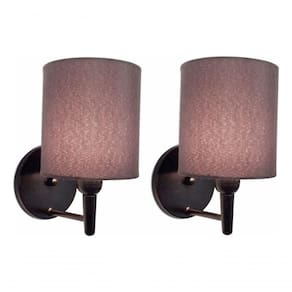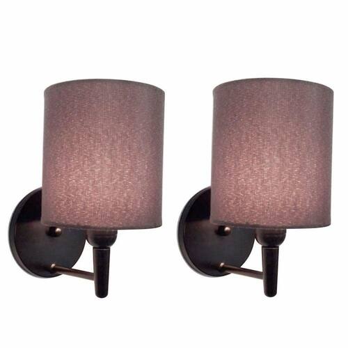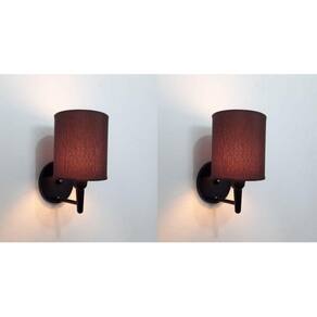 Kit-2 Arandela Cilíndrica Md-2009 Base Preto Cúpula Em Tecido 14x15cm Café - Bivolt
