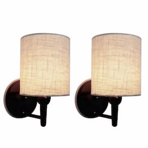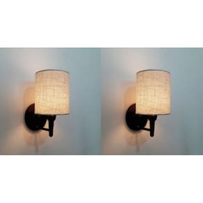 Kit/2 Arandela Cilíndrica Md-2009 Base Preto Cúpula em Tecido 14x15cm Rustico Bege - Bivolt