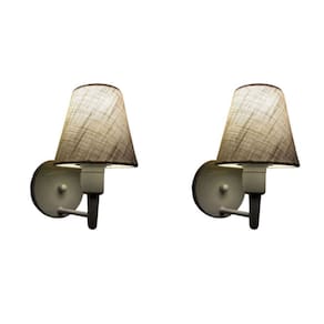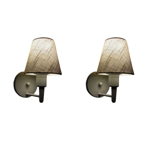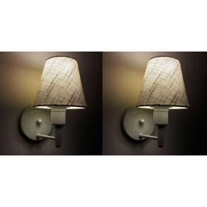 Kit/2 Arandela Cone Md-2012 Branco C/ Inter Liga e Desl Cúpula em Tecido Rustico Bege - Bivolt