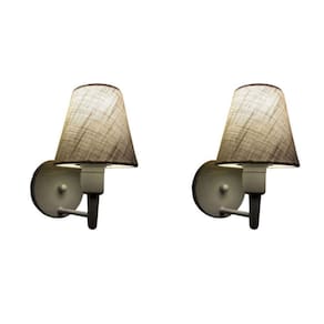 Kit-2 Arandela Cone Md-2012 Branco C- Inter Liga E Desl Cúpula Em Tecido Rustico Bege - Bivolt