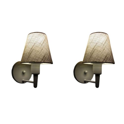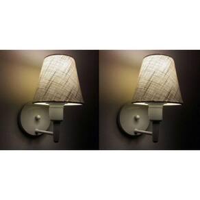 Kit/2 Arandela Cone Md-2012 Branco C/ Inter Liga E Desl Cúpula Em Tecido Rustico Bege - Bivolt