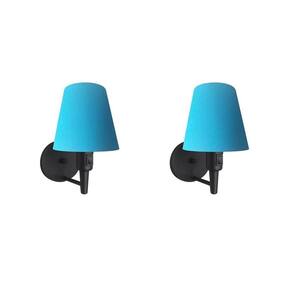 Kit/2 Arandela Cone Md-2013 Preto C/ Inter Liga E Desl Cúpula Em Tecido Azul Turquesa - Bivolt
