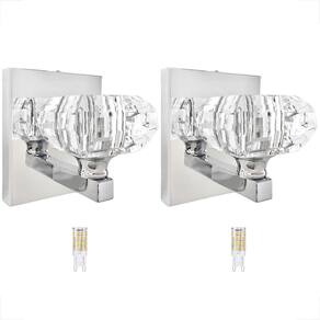 Descrição: - materiais: metal e cristal k9. - dimensões do cristal cxlxa : 7 cm x 7 cm x 4 cm - dimensões da base: Altura: 12 cm Largura: 10 cm Profundidade: 2 cm - profundidade total da arandela: 10 cm