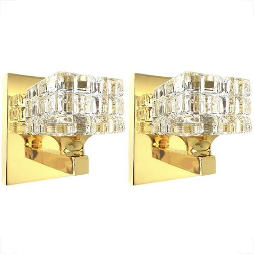 - Materiais: metal e cristal k9. - Dimensões do cristal CxLxA : 7 cm x 7 cm x 4,5 cm - Dimensões da base: Altura: 12 cm Largura: 10 cm Profundidade: 2cm - Profundidade total da arandela: 10,5 cm
