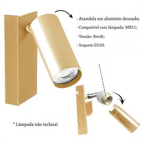 Kit 2 Arandela Dourada Direcionável Leitura Cabeceira Mr11 Bet34
