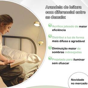 Kit 2 Arandela Leitura Direcionável Cabeceira Led 5W 3000K Bet72 Uma arandela de leitura com tecnologia de LED aprimorada combina design funcional e conforto visual. O LED atualizado oferece uma luz mais difusa e uniforme, eliminando sombras intensas e pontos de brilho que podem causar desconforto ocular. Ideal para ambientes de leitura ou relaxamento. Além disso, o design é moderno e compacto, com ajuste direcional que permite posicionar a luz de forma precisa, atendendo às necessidades de quem lê ou trabalha.