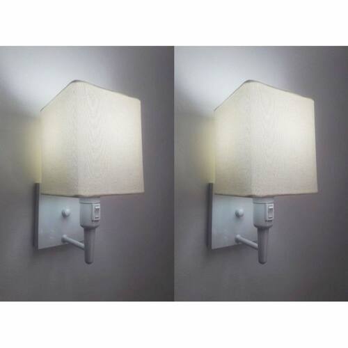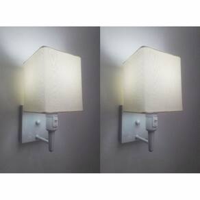 Kit/2 Arandela Quadrada Md-2019 Branco C/ Inter Liga e Desl Cúpula em Tecido Algodão Crú - Bivolt