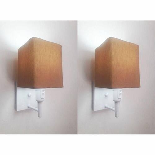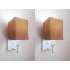 Kit/2 Arandela Quadrada Md-2019 Branco C/ Inter Liga E Desl Cúpula Em Tecido Palha - Bivolt