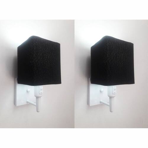 Kit/2 Arandela Quadrada Md-2019 Branco C/ Inter Liga e Desl Cúpula em Tecido Preto - Bivolt
