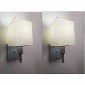 Kit/2 Arandela Quadrada Md-2019 Cinza C/ Inter Liga e Desl Cúpula em Tecido Algodão Crú - Bivolt