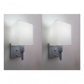 Kit/2 Arandela Quadrada Md-2019 Cinza C/ Inter Liga E Desl Cúpula Em Tecido Branco - Bivolt