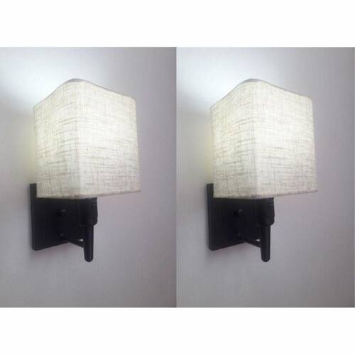 Compre! Kit/2 Arandela de Cabeceira e Camarim Quadrada Md-2019 Preta C/ Inter Liga e Desl Cupula Rustico Bege