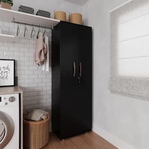 Com estrutura em MDP, possui duas portas com dobradiças metálicas, fechadura e cinco prateleiras internas que otimizam o espaço.