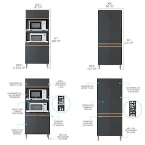 Kit 2 Armários Para Cozinha Multiuso Forno/micro Menu Móveis Preto O Armarios para Cozinha Modulada Sabrina foram desenvolvidos para atender todas as suas necessidades do dia a dia com um design moderno, cheio de atitude, personalidade, funcionalidade, beleza e versatilidade. As Cozinhas sao a tendencia do momento e foi arquitetada com modulos uteis que vao facilitar a sua rotina diaria nos preparos dos alimentos e armazenamento dos utensilios e mantimentos, mantendo sua cozinha sempre organizada. Por se tratar de armarios de cozinha modulados voce pode ajustar os modulos conforme o espaco disponivel e montar diversas modulacoes diferentes para deixar o ambiente muito mais aconchegante. A elegancia fica por conta dos puxadores em perfil e os pes dando um toque unico de sofisticacao. Produzida com materiais de excelente qualidade, garantindo a durabilidade e vida util. O melhor em moveis no design atual aliando conforto, qualidade e otimos precos! Caracteristicas: Produzida em MDP de 15 mm Acabamento UV Texturizado Portas com Dobradica Metalica Porta Basculante com Pistao a Gas Puxadores Perfil PVC Pes Regulares ABS