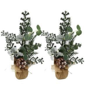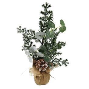 -02 Unidades Arranjo Enfeite de Mesa Natal Rústico Folhagens com Pinha Natural 37cm - Magizi