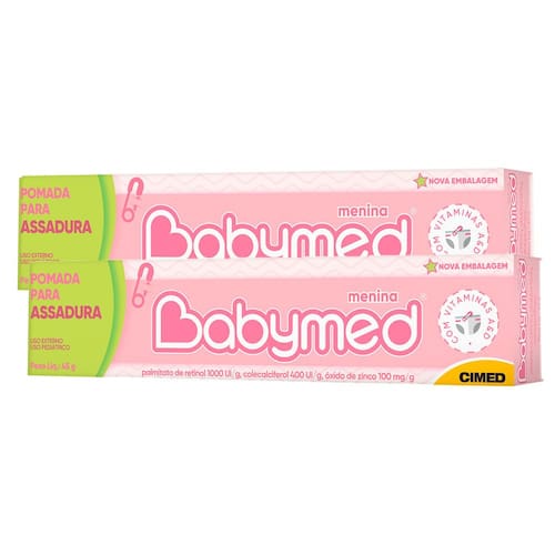 BABYMED MENINA POMADA CONTRA ASSADURA Previne assaduras, além de proteger a pele irritada em quadros de assaduras e brotoejas. Composição: Palmitato de Retinol (Vitamina A) ....... 1000UI/g Colecalciferol (Vitamina D) .................. 400UI/g Óxido de Zinco ................................... 100mg/g Excipientes ........................................... qsp 1g Excipientes: vaselina, óleo mineral, talco, lanolina anidra, monoestearato de glicerila e aroma de morango. Modo de usar: A cada troca de fraldas, limpe cuidadosamente a pele do bebê e aplique uma camada de pomada sobre a área a proteger, massageando suavemente.