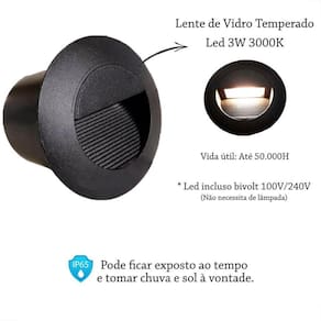 - Potência máxima: 3W - Temperatura de Cor: 3000K - Tensão: Bivolt 110V - 220V - Grau de Proteção: IP65 - Facho: 1 - Vida Útil: 50.000 Horas