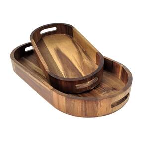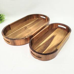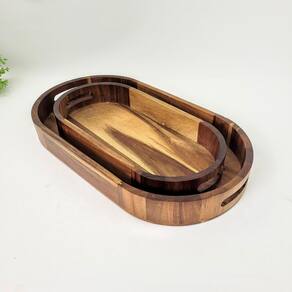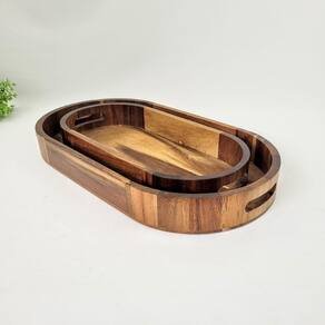 Kit 2 Bandeja Madeira Oval Centro De Mesa Decoração