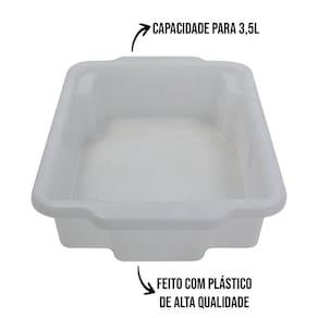 Ficha técnica: Conteúdo: - caixa multiuso 3,5l - cor: branco - desenvolvido em plástico pp polipropileno - livre de bpa bisfenol a - feito com material atóxico - indicado para freezer - capacidade: 3,5l - tramanho: 21,5 x 33 x 7 - peso: 120g