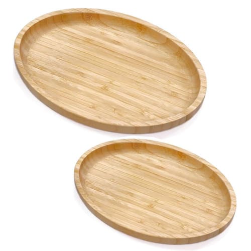 Kit 2 Bandejas de Bambu 23cm e 28cm Servir Decorar Petisqueira Travessa Oval Plasvale.