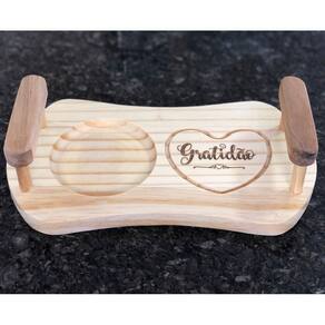 Kit 2 Bandejas Gratidão Madeira Pinus c/ espaço para servir Que tal servir café com muito estilo? Nosso kit exclusivo atende a mais nova tendência do momento. Sirva de forma estilosa para desfrutar de momentos valorosos e porque não saborosos na companhia da familia e amigos. Ótimo tambem para as cafeterias que servem nesta modalidade. Peças feitas de material de alta qualidade o que as torna fortes, resistentes e deixam qualquer ambiente mais bonito e moderno.Medidas:(AxLxC) 1,5cm "base"/6,5cm "total com alça" x 14cm x 25cmOBS: Por se tratar de madeira de pinus natural, pode existir pequenas variações na tonalidade das cores da madeira. Caneca e bolacha não acompanham o produto. São apenas decorativasEmbalagem contêm 2 peças Marca: Antilope Decor Porcelanas