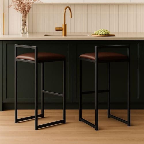 O assento em corino, além de elegante, oferece toque macio e fácil limpeza, tornando o dia a dia mais prático sem abrir mão do estilo. O design minimalista, com linhas retas e proporções equilibradas, se adapta perfeitamente a cozinhas gourmet, áreas de lazer e espaços corporativos modernos.