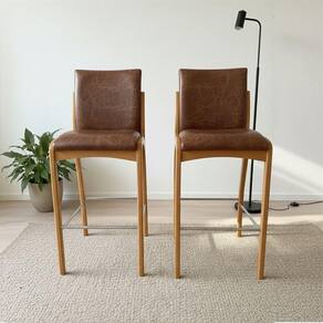 Estrutura em madeira maciça, de longa durabilidade. Assento em courino marrom, confortável e de fácil limpeza. Ideal para cozinhas, áreas gourmet e bares residenciais. Estilo moderno que se adapta a diferentes propostas de decoração. Marca: Não Informado