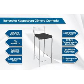 Banqueta Sala de Jantar Gênova 2B705CR Aço Kit 2 Un Cromado/Suede Escuro - Kappesberg