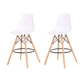 Kit 2 Banquetas Alta Eiffel Eames Branca Base Madeira Cozinha Bar Bistrô Bancada