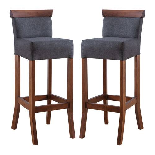 CARACTERÍSTICAS TÉCNICAS: - Produzida em Madeira Maciça Sustentável de Reflorestamento - Acabamento em Verniz na cor Imbuia - Encosto Estofado Preenchido com Espuma D18 - Assento Estofado Preenchido com Espuma D23 - Revestimento em Tecido Linho na cor Cinza L67 - Banqueta Entregue Montada - Kit Composto por DUAS Banquetas