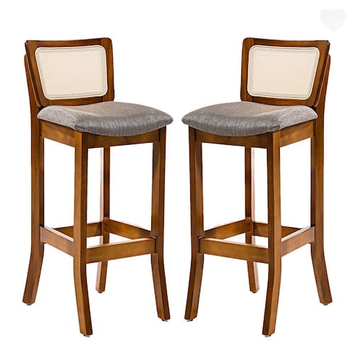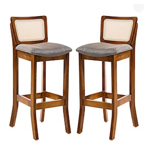CARACTERÍSTICAS TÉCNICAS: - Produzido em Madeira Maciça Sustentável - Acabamento em Verniz na cor Imbuia - Encosto com Revestimento em Rattan com Fibra Sintética Quadriculada na cor Bege - Assento Estofado Preenchido com Espuma D23 - Assento com Revestimento em Linho Cinza L55 - Banqueta Entregue Montada *Kit Composto por DUAS Banquetas