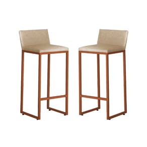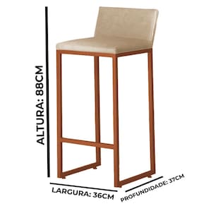 Kit 2 Banquetas Alta Dani Reforçada Decorativa Balcão Bancada Cozinha Bar Base Bronze Courino - Bege