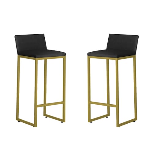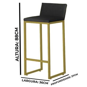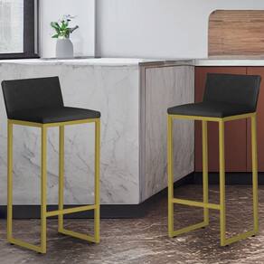 Kit 2 Banquetas Alta Dani Reforçada Decorativa Balcão Bancada Cozinha Bar Base Dourada Courino - Kit de Banquetas